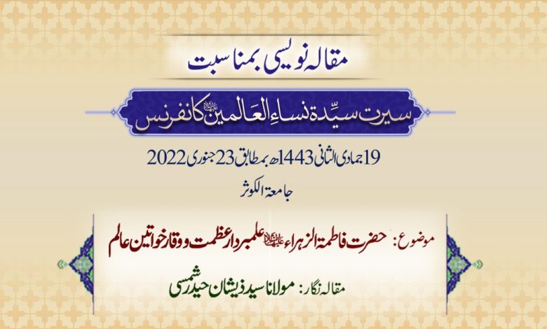 حضرت فاطمۃ الزہرا سلام اللہ علیہا علمبردارِ عظمت ووقار خواتین عالم حضرت فاطمۃ الزہرا سلام اللہ علیہا علمبردارِ عظمت وقار خواتین عالم