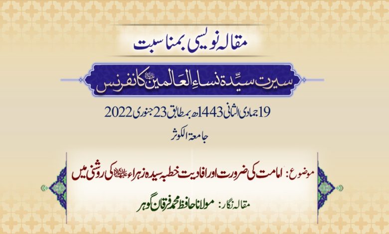 امامت کی ضرورت اور افادیت خطبہ سیدہ زہراء سلام اللہ علیہا کی روشنی میں