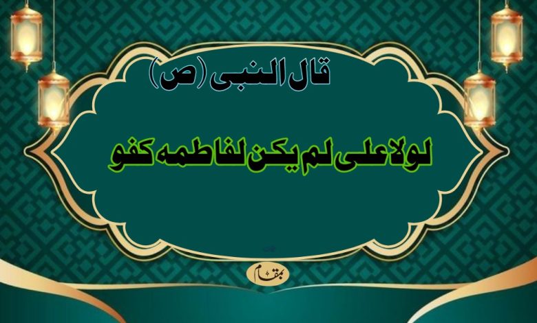 اگر علی نہ ہوتے تو فاطمہ کا کوئی کفو اور ہمسر نہ ہوتا۔