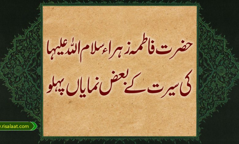 حضرت فاطمہ زہراء سلام اللہ علیہا کی سیرت کے بعض نمایاں پہلو