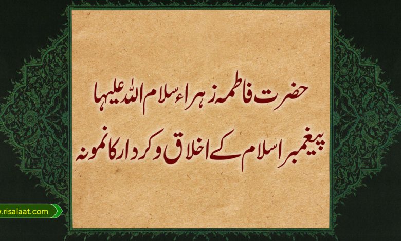 حضرت فاطمہ زہراء سلام اللہ علیہا پیغمبر اسلام کے اخلاق و کردارکا نمونہ